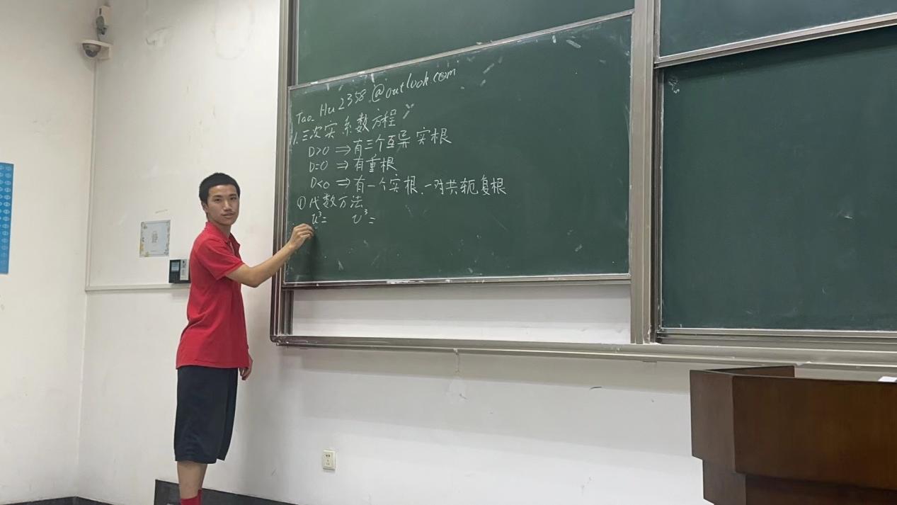 对于胡韬来说,取得优异的学习成绩并不是唯一追求,他参加了多项科创竞赛,通过竞赛促进自己全面发展,为学校争得荣誉。大一时,他以全校第一的成绩进入全国大学生数学竞赛决赛;大二他再次进入决赛,在备考过程中,他和同学相互讨论题目,积极查漏补缺,开拓思路,并在决赛中和同班同学一起,以低年级学生的身份获得高年级组一等奖。在获奖之后,他继续准备丘成桐全国大学生数学竞赛,在广泛阅读数学书籍的过程中收获颇丰。一个月后,他连获分析与偏微分方程、应用与计算数学赛道的优胜奖,成为全校当年唯一连获两个优胜奖的选手。在一次次竞赛的磨练中,他收获了知识,锤炼了勇气,也收获了友谊。